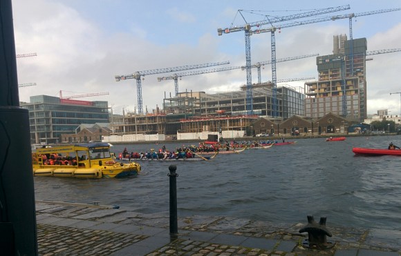 The wind was pretty fierce yesterday and the dragon boats had to race into a stiff headwind (the rower in me winced in sympathy). Going in the opposite direction were the mechanised Duck (DUKWS) from the Viking Splash Tours. And behind it all is the evidence of the renewed construction boom.