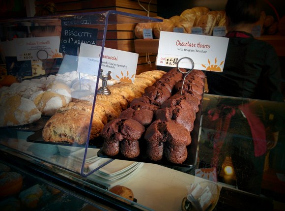 So instead of a literary essay, have a photo of some oddly shaped desert. This was from a cafe I was at this morning on my way to work. I think maybe it’s meant to look like hearts if viewed from the top looking down, but as things stood, the presentation of the desserts pointing toward the line of customers filing past gave a totally different sort of impression. So tell me, what do you see here?