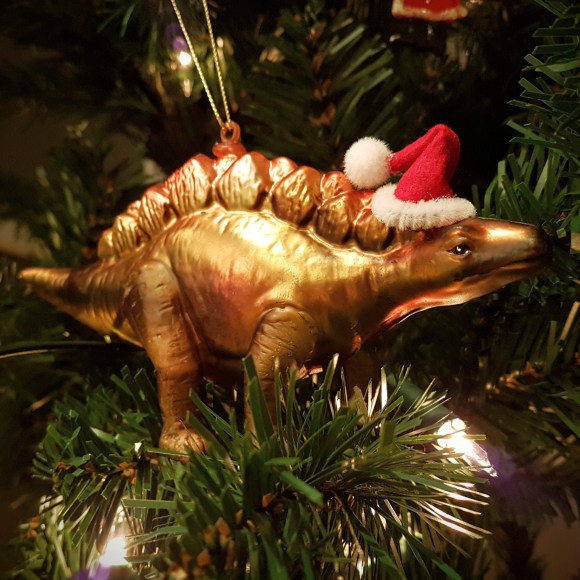 And lastly of course we have Hawkeye’s favourite – the three wise Christmas dinosaurs foraging around our tree. These were also a gift from a friend in America. When I see them on the tree I am reminded of a line in the movie Love, Actually, when Emma Thomson’s character animatedly congratulates her daughter on getting a part in the Christmas play: